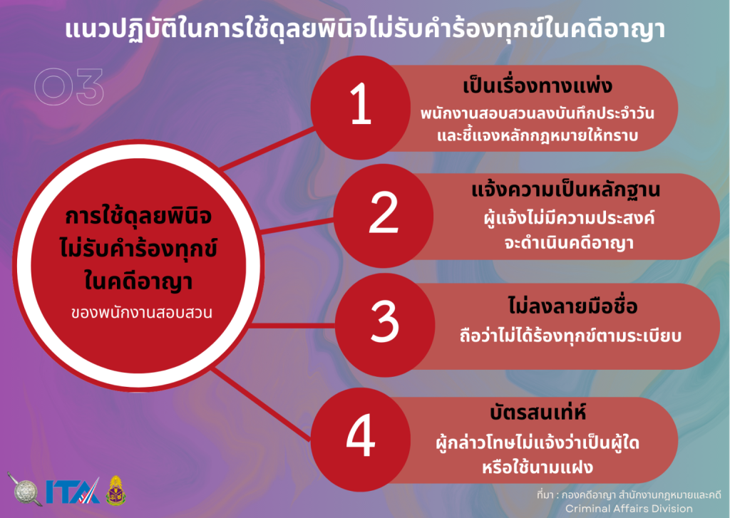 3. แนวปฏิบัติในการใช้ดุลยพินิจไม่รับคำร้องทุกข์ในคดีอาญา